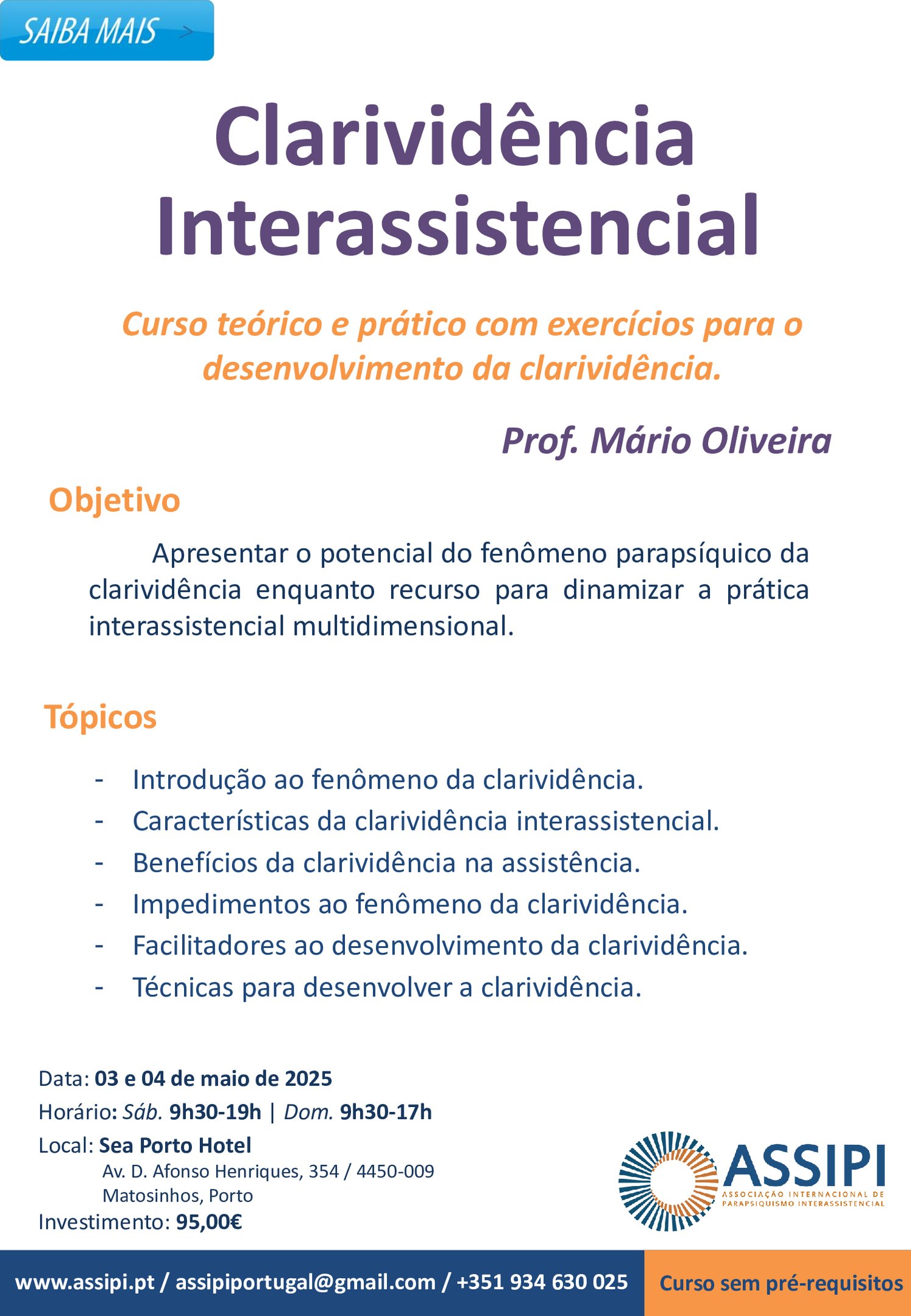 03 e 04 MAIO - Curso Clarividência Interassistencial